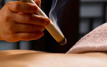 Moxibustion is a traditional Chinese medicine heat therapy which consists of burning dried mugwort to heat particular points on the body. Moxibustion promotes circulation and is often used in conjunction with acupuncture to treat pain due to injury or arthritis, digestive problems, gynecological conditions, and to protect against cold and flu strains.